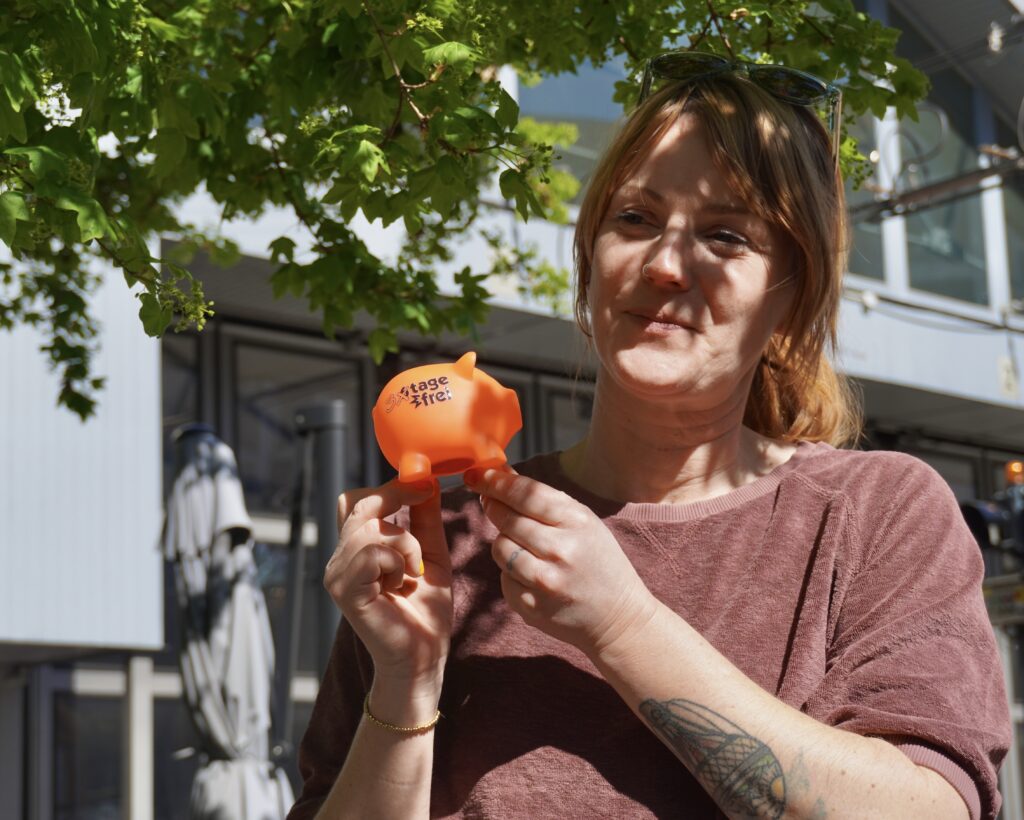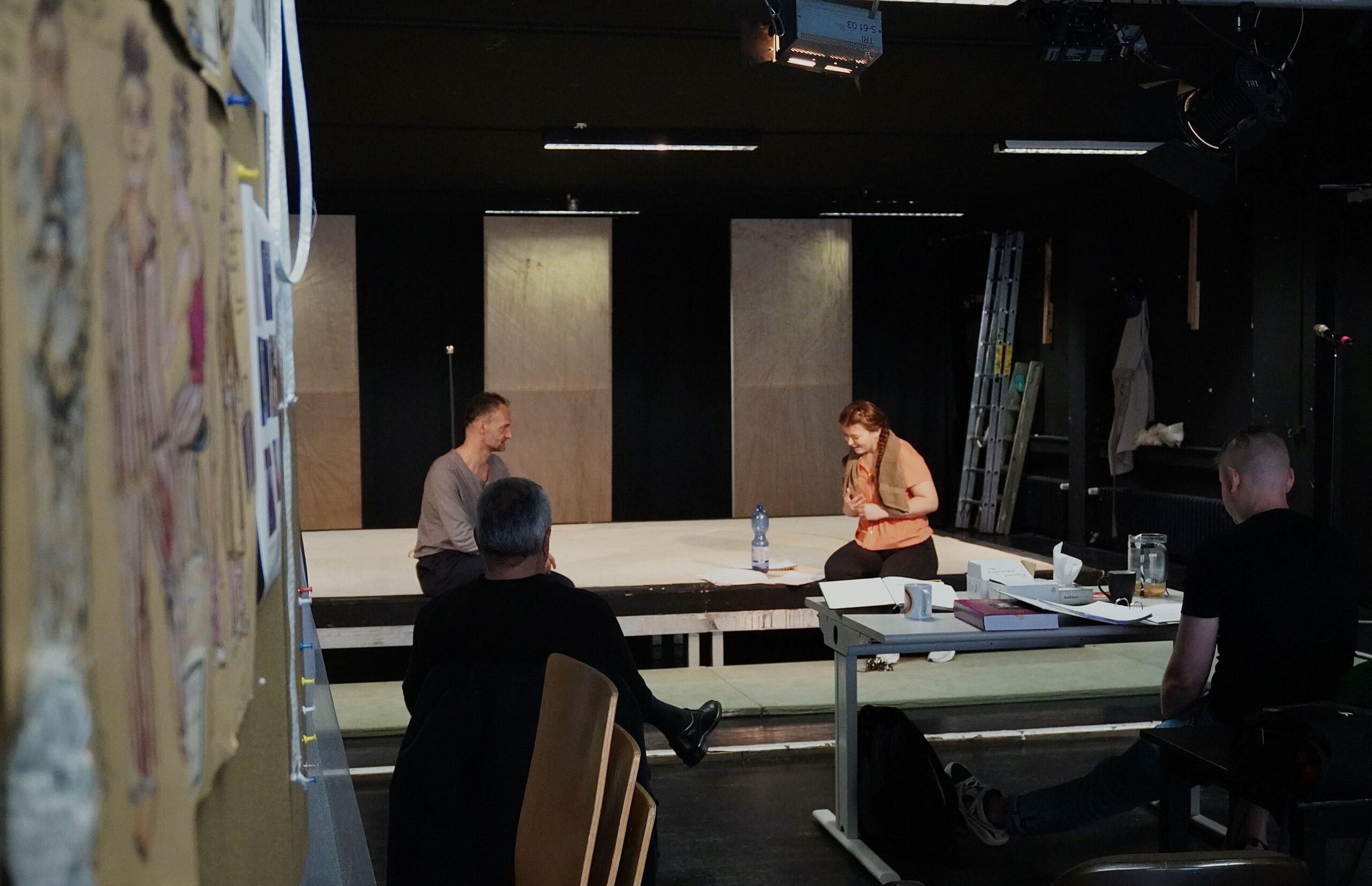 Au rez-de-chaussée du théâtre Rampe se cache une salle feutrée par des rideaux dans laquelle travaillent deux artistes en résidence. Jette Schwabe et Lina Determann s’attèlent à préparer leur installation pour le festival 3 tage frei. Pas de bruit, les jeunes filles se concentrent pour optimiser leur travail avec le peu de temps qui leur reste. Les coupes budgétaires ont fait qu’elles disposent de deux semaines de moins pour préparer leur installation. Bien que leur cachet soit passé de 7 000 à 5 000 euros, elles sont soulagées que le festival n’ait pas davantage coupé leur enveloppe. Ni leurs vêtements branchés, ni leur attitude décontractée ne suffisent à masquer leurs incertitudes.